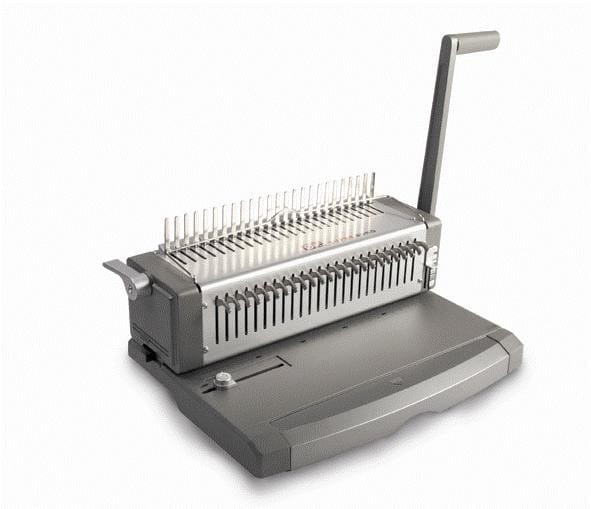 - czytelny opis i precyzyjna regulacja sprawiają, że jest to wyjątkowo przyjazne i komfortowe w obsłudze bindowanie: miarka maks. ilości dziurkowanych kartek, wskaźnik do pomiaru grubości grzbietu, wskaźnik ułatwiający dobór odpowiedniej średnicy grzbietu i szerokości marginesu