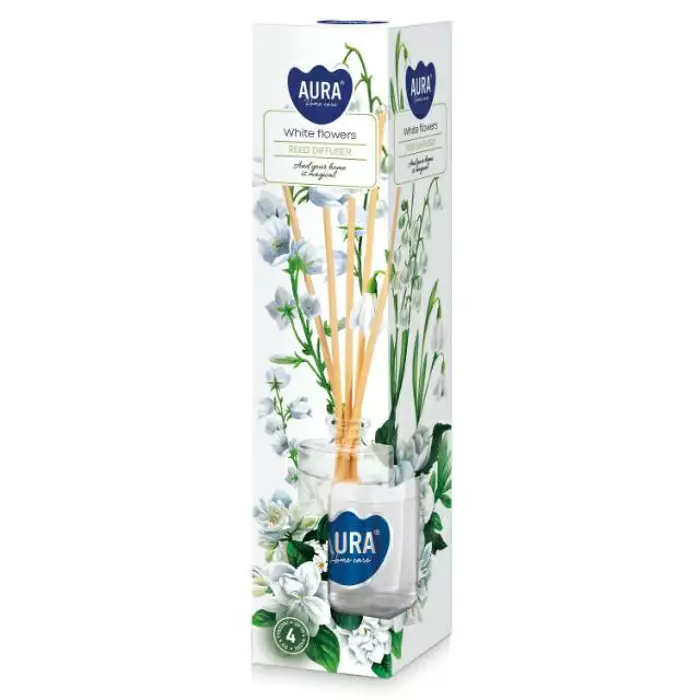 Dyfuzor zapachowy BIAŁE KWIATY to idealne rozwiązanie dla osób, które preferują delikatny aromat białych kwiatów. Dyfuzory zapachowe Aura są popularnymi produktami do wnętrz, które służą do dodania przyjemnego zapachu do pomieszczeń. Białe kwiaty są często kojarzone z subtelnością, elegancją i świeżością, dlatego taki aromat może być szczególnie atrakcyjny dla osób ceniących delikatne i romantyczne zapachy. Kwiatowe zapachy są często kojarzone z przyjemnymi i relaksującymi doznaniami, dzięki czemu mogą tworzyć przyjemną atmosferę w domu czy biurze.