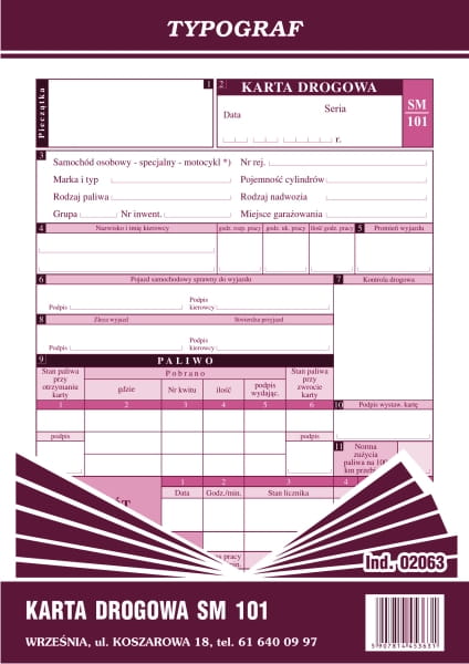 Karta drogowa samochody osobowe A5 Sm 101 Typograf
