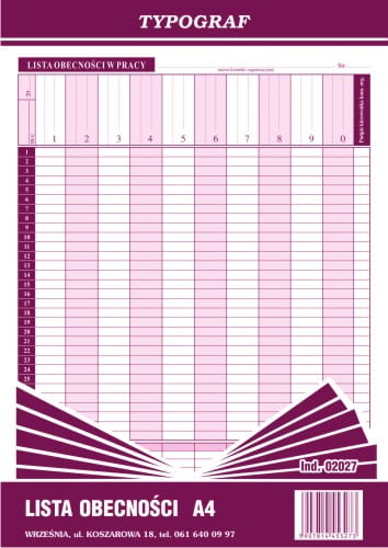 Lista obecności A4 Typograf