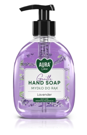 Nawilżające mydło zapachowe w płynie marki AURA o aromacie lawendy, której chłodny, ziołowy zapach wprowadza do łazienki atmosferę ciszy i harmonii. Mydło myje delikatnie, pozostawiając skórę miekką i jedwabiście gładką w dotyku, a jego nuty zapachowe łączą w sobie rześkość i zmysłowość, dając efekt odświeżonej skóry i poczucia relaksu podczas każdej aplikacji.