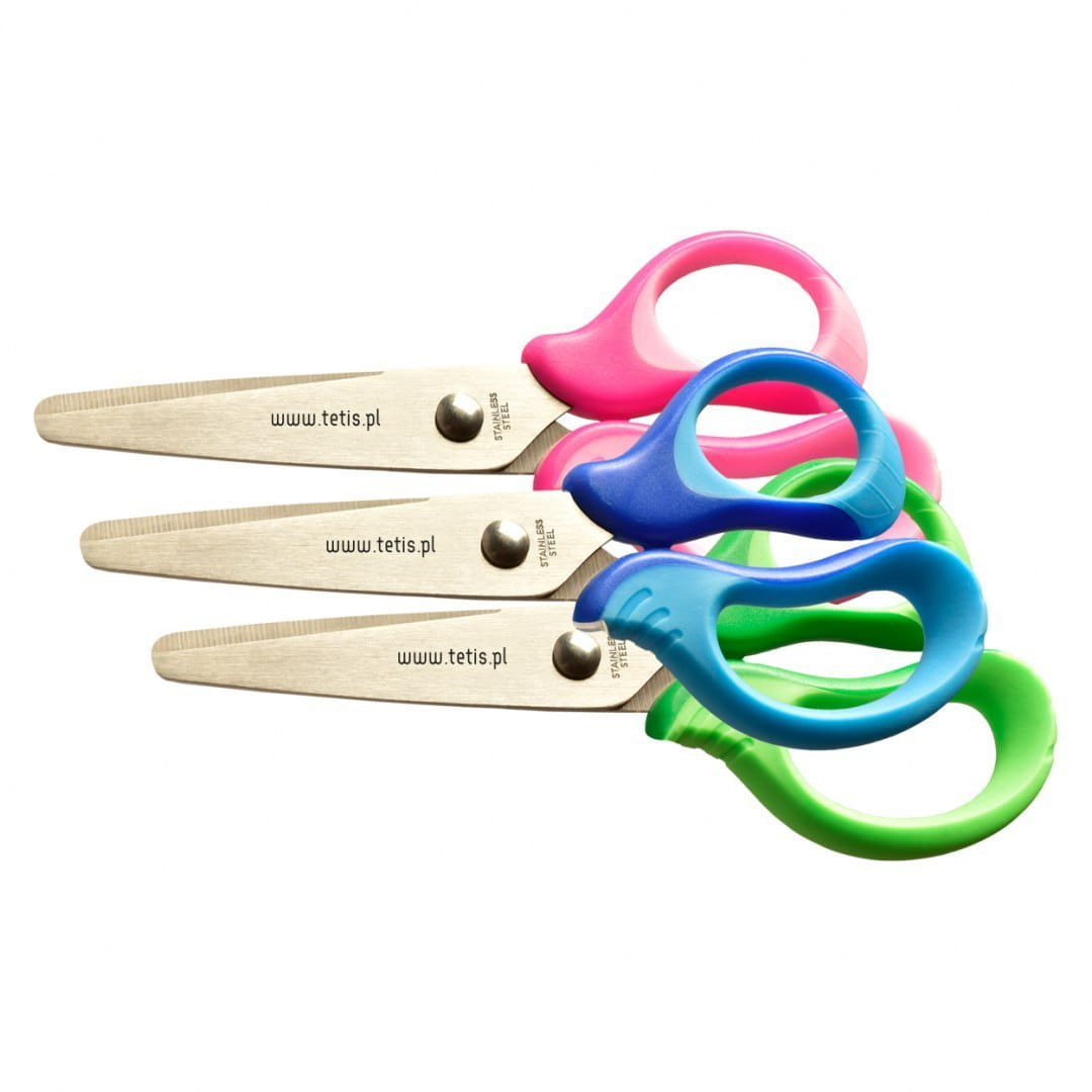 Nożyczki szkolne (5"/127 mm) ze stali nierdzewnej z zaokrąglonymi końcówkami. Wyposażone w bardzo miękki, elastyczny uchwyt.