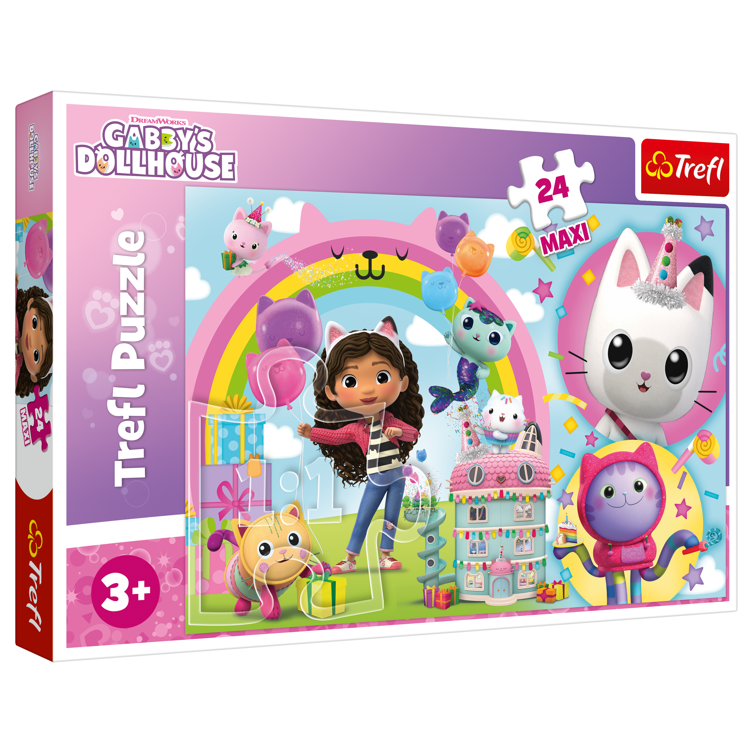Puzzle stworzone specjalnie z myślą o dzieciach powyżej 3. Roku życia. Układankę tworzą 24 bardzo duże puzzlowe elementy, dzięki czemu młodsze dzieci poradzą sobie z samodzielnym ułożeniem obrazka. Po ułożeniu powstaje piękny obrazek w rozmiarze maxi. Zabawa rozwija zdolności manualne, spostrzegawczość i daje radość samodzielnego tworzenia. Dużym atutem jest piękna grafika z bohaterami ulubionych bajek.