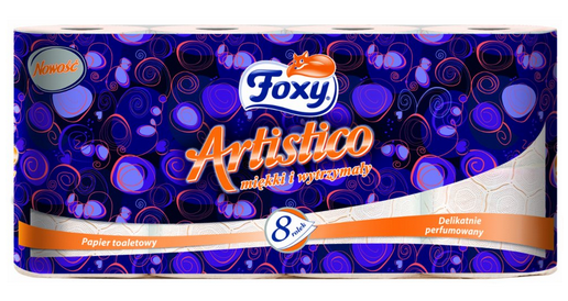 Papier toaletowy Foxy Artistico, 2 warstwowy to idealna proporcja pomiędzy miękkością i wytrzymałością o niepowtarzalnym i wyróżniającym się wzorze wytłoczenia „Miękkie Poduszeczki”