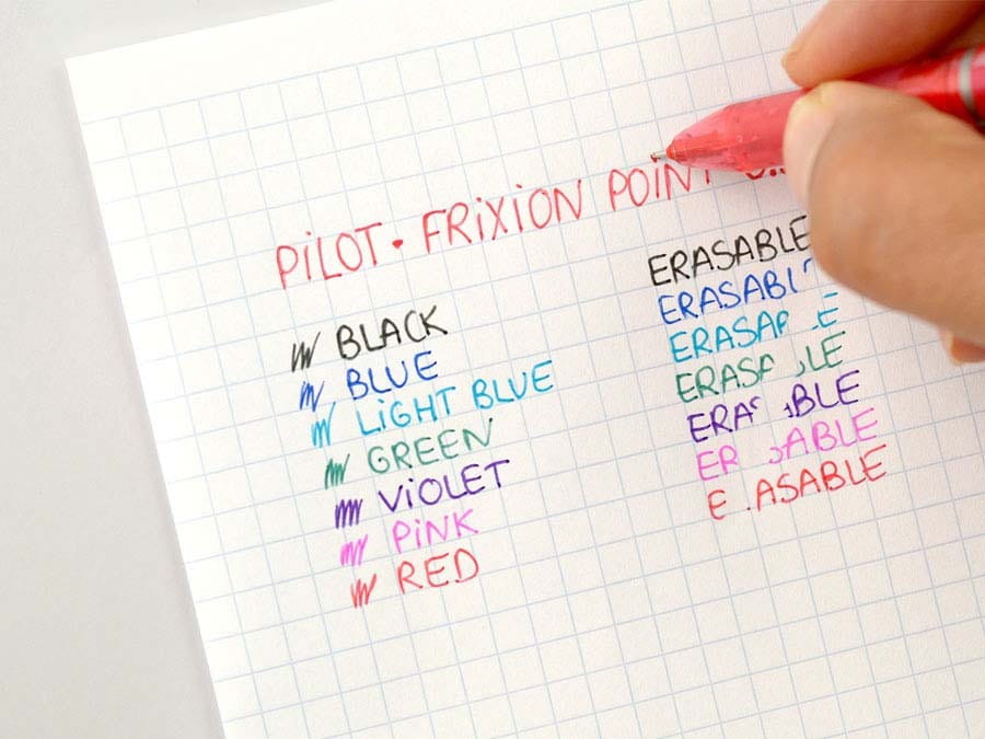 - napisany piórem Frixion tekst potrzyj dynamicznie szarą końcówką i zobacz jak znika w magiczny sposób