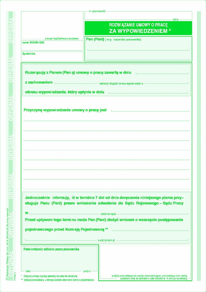 zastosowanie: druki kadrowe