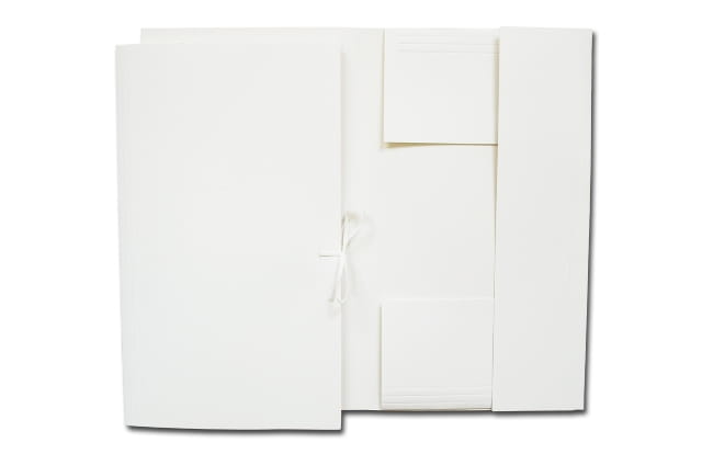 Teczka wykonana z luksusowej tektury biało - białej 250 g/m2 o klasie GC2. Tektura spełnia wymagania normy ISO 9706