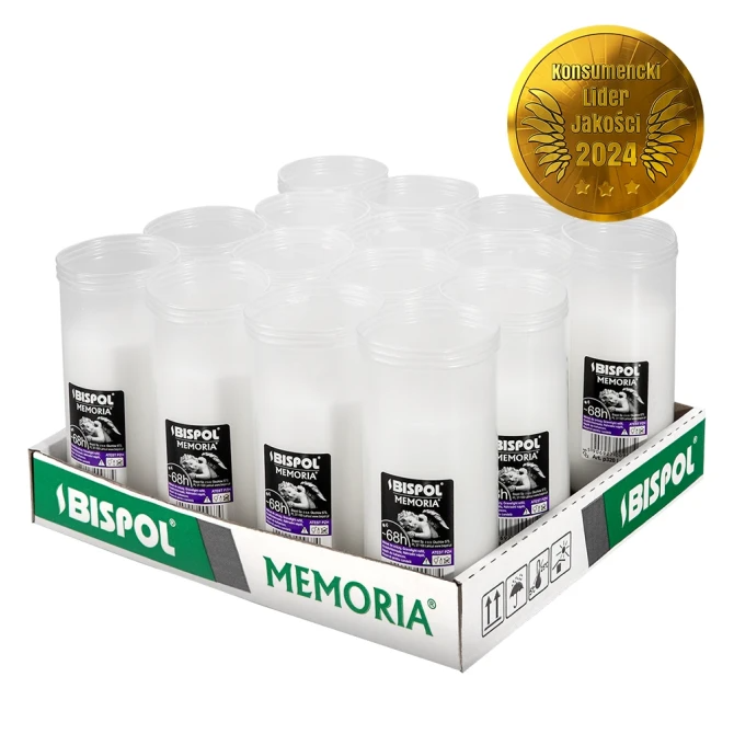 Wysokie wkłady prasowane do zniczy o czasie palenia do 68 godzin. Wykonane z najwyższej jakości parafiny. Wkłady do zniczy wypalają się równomiernie do końca. Nie kopcą i nie pozostawiają czarnych smug na szkle znicza. Uniwersalne wkłady do zniczy 68 godzinne są całoroczne sprawdzają się w różnych warunkach pogodowych. Dzięki temu ogień zamknięty w zniczu nie gaśnie, pozostaje na dłużej.