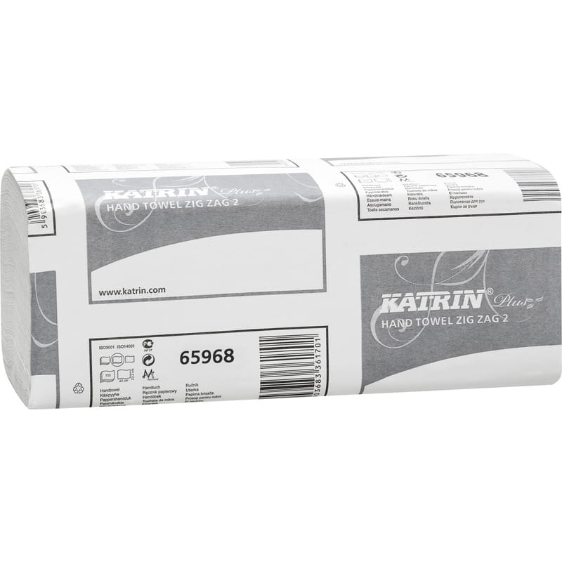Katrin, Plus, ręczniki, ZZ-Fold, Zig Zag 2, 100% celulozy, 2 warstwy, śnieżnobiały, 232mmx230mm, 22g/m2